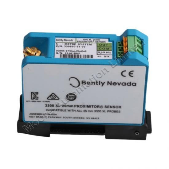 The 330850-51-00 3300 XL 25 mm Proximitor Sensor has the same advanced features as our previous 3300XL Proximitor Sensors.Improved RFI/EMI immunity allows the 3300 XL Proximitor Sensor to achieve European CE mark approvals without any special mounting considerations. This RFI immunity also prevents the transducer system from being adversely affected by nearby high frequency radio signals.