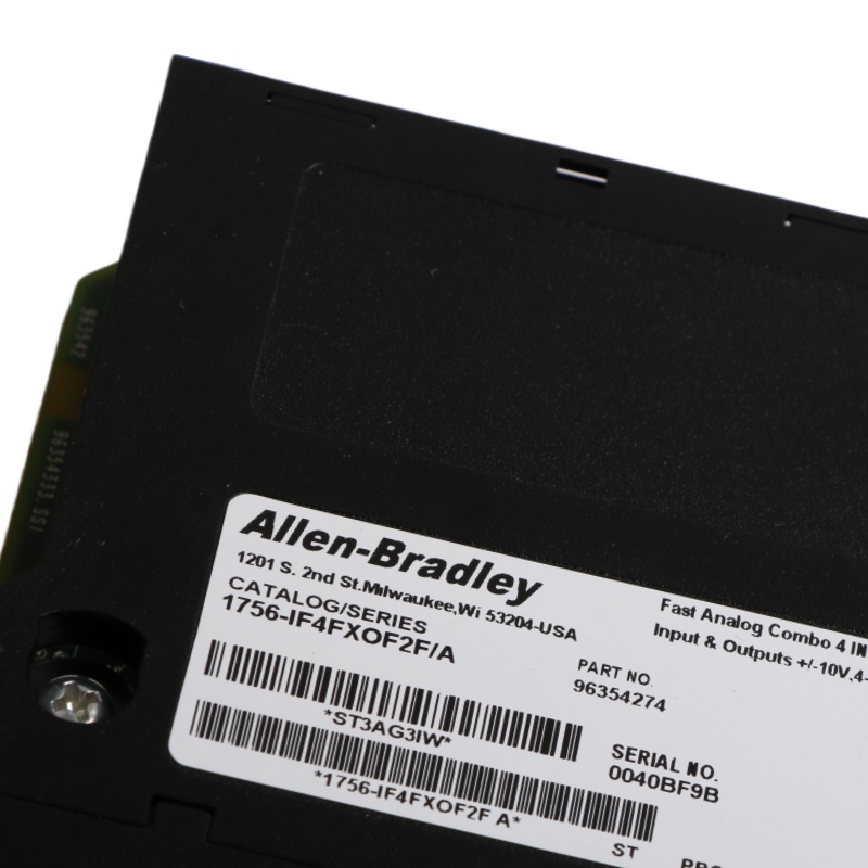 The PLC 1756-IF4FXOF2F is an analog I/O module. The module has 4 high-speed, sub-millisecond, differential inputs and 2 high-speed voltage or current outputs. The module has a display that shows the module health and operation state such as calibration mode.